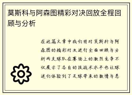 莫斯科与阿森图精彩对决回放全程回顾与分析